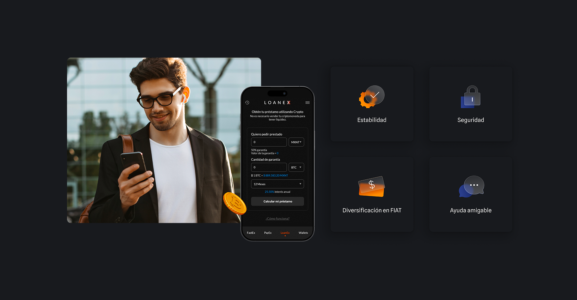 Por medio de la aplicación el usuario puede comprar y vender Bitcoin, solicitar créditos y recibir pagos con Bitcoin en su negocio.